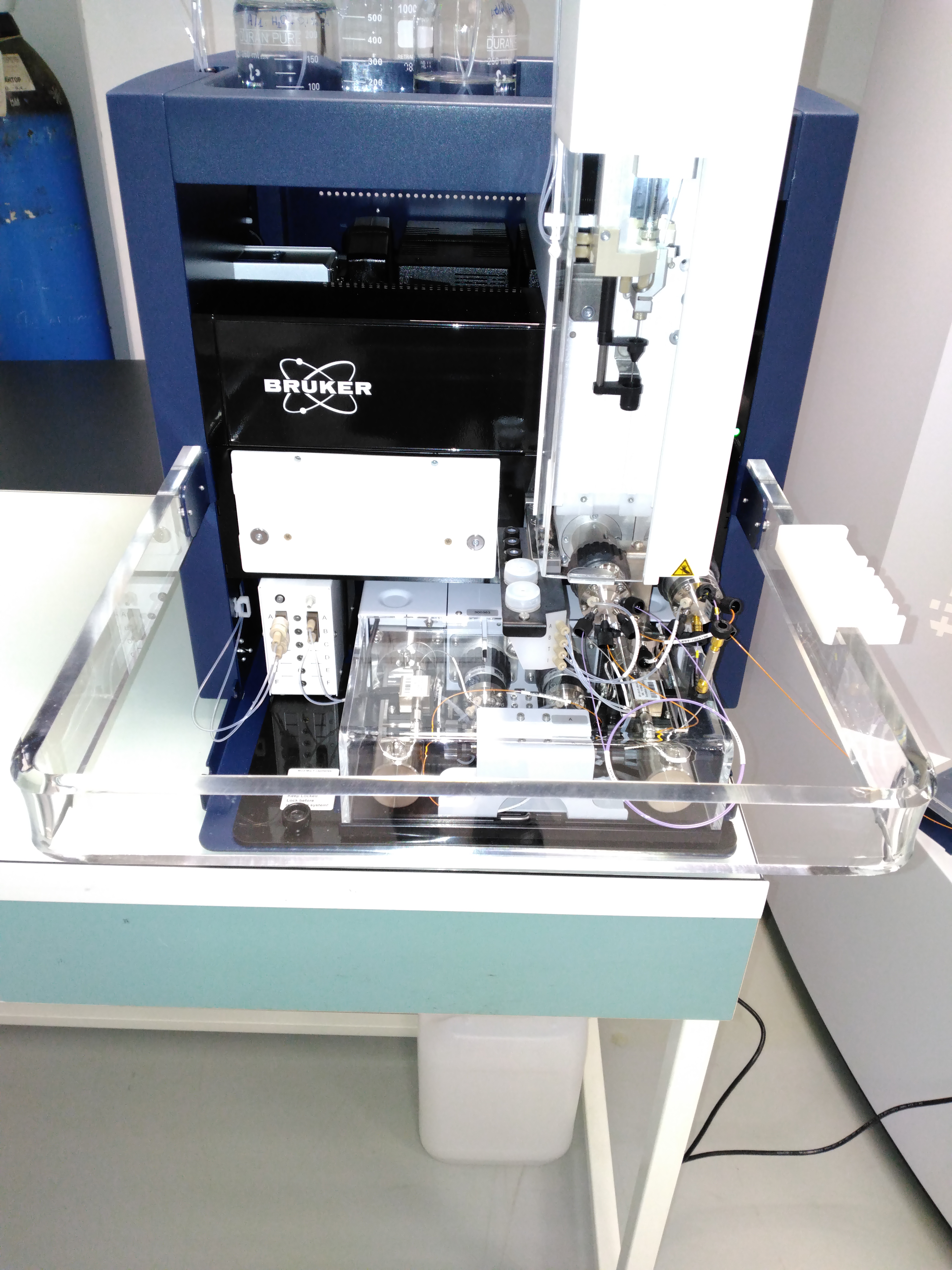 Spectromètre de masse de dernière génération, couplant mobilité ionique et spectrométrie de masse haute résolution à triple quadrupole avec analyseur en temps de vol pour caractériser les molécules, associé à un équipement de nanoHPLC.